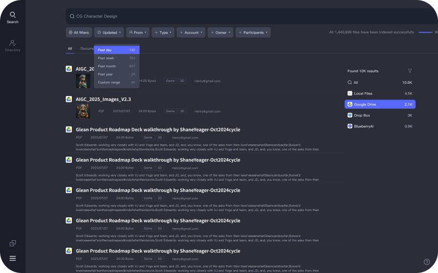 Aggregate multi-platform resources, no need for repeated switching. One-click search quickly locates target content. Support multi-dimensional filtering by format, time, etc., making scattered documents, materials and other assets easily accessible, and efficiently activate every resource.